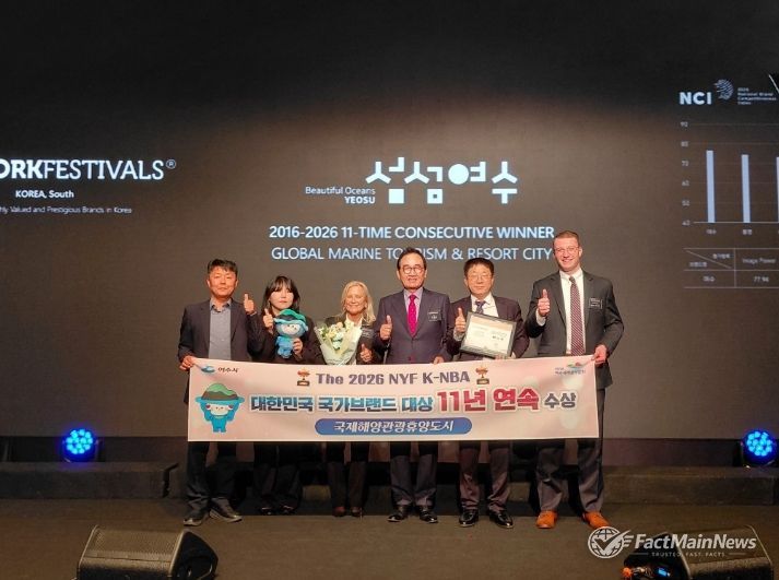 팩트메인뉴스 이훈 기자 | 여수시는 2일 오전 서울 롯데호텔에서 열린 ‘2026 대한민국 국가브랜드 대상’에서 11년 연속 국제해양관광휴양도시 부문 대상을 수상했다고 밝혔다.