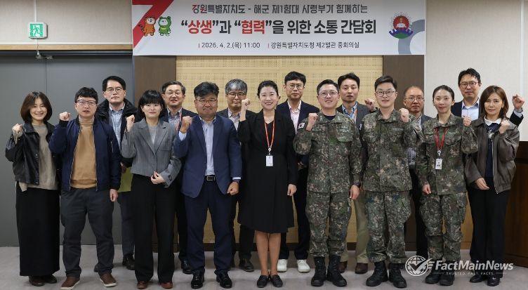 팩트메인뉴스 이훈 기자 | 강원특별자치도는 4월 2일 해군 제1함대 사령부와 간담회를 개최하고 도와 군의 협력을 위한 의견을 나눴다.