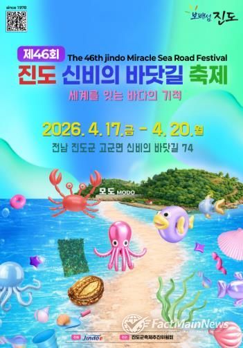 팩트메인뉴스 이훈 기자 | 진도군은 오는 4월 17일부터 20일까지 4일간 고군면 회동리 일원에서 제46회 진도신비의바닷길축제를 개최한다.