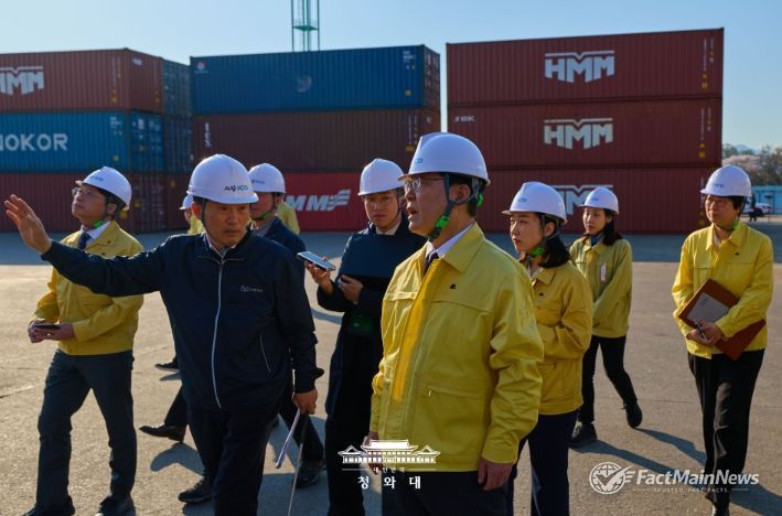 팩트메인뉴스 이훈 기자 | 이재명 대통령은 8일 오후, 의왕 소재 내륙컨테이너기지(ICD)를 방문하여 고유가 상황으로 어려움을 겪고 있는 화물운송 및 물류업계 종사자들과 간담회를 가졌다.