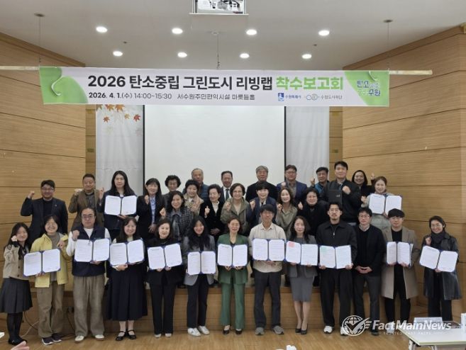 팩트메인뉴스 이훈 기자 | 수원특례시와 수원도시재단이 1일 서수원주민편익시설에서 ‘2026년 탄소중립 그린도시 리빙랩 착수보고회’를 열고, 탄소중립 그린도시 리빙랩 사업의 추진 방향을 알렸다.
