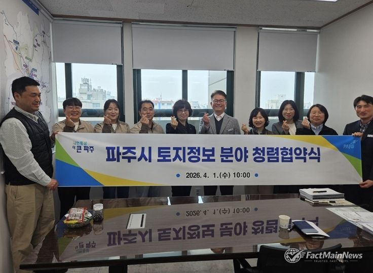 팩트메인뉴스 이훈 기자 | 파주시는 지난 1일 지적측량 수행기관인 한국국토정보공사 파주지사와 ‘토지정보 분야 청렴협의체’를 구성하는 내용으로 협약을 체결했다.