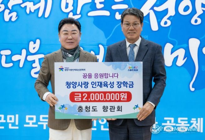 특히 향관회 측은 청양의 미래를 이끌어갈 우수 인재 양성에 힘을 보태고 싶다며 장학금 200만 원을 쾌척, 지역 사랑의 마음을 몸소 실천해 훈훈함을 더했다.