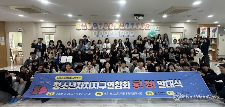 팩트메인뉴스 이훈 기자 | 해운대청소년수련관(관장 김소영)은 지난 3월 28일, 청소년들이 주도적으로 참여하고 협력하는 자치기구 연합체인 ‘흥청’의 2026년도 발대식을 개최했다.