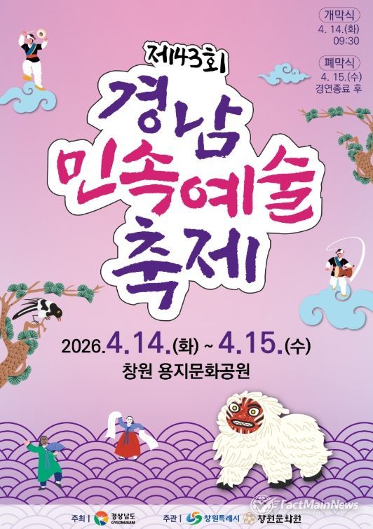 팩트메인뉴스 이훈 기자 | 창원특례시는 오는 4월 14일부터 15일까지 이틀간 창원 용지문화공원에서 “제43회 경남민속예술축제”를 개최한다고 밝혔다.