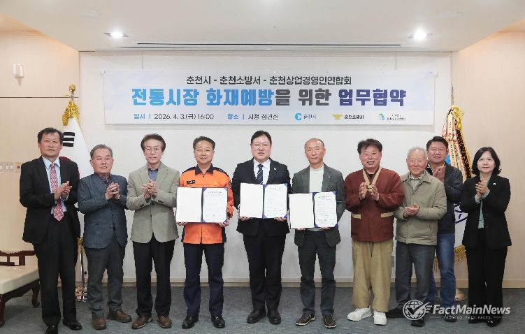춘천시는 3일 시청 접견실에서 춘천소방서, (사)춘천상업경영인연합회와 전통시장 화재예방 업무협약을 체결했다.