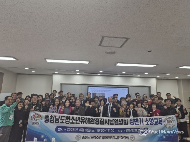 팩트메인뉴스 이훈 기자 | 충남도는 3일 충남인재개발원에서 가금현 충남도 청소년유해환경감시단협의회장, 시군 감시단장 등 25명이 참석한 가운데, 상반기 충남도 청소년유해환경감시단 정기 총회 및 교육이 진행됐다고 밝혔다.