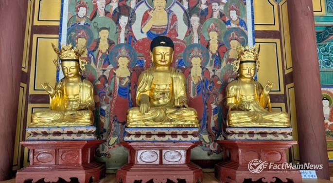 팩트메인뉴스 이훈 기자 | 임실군 관촌면 소재 신흥사 대웅전에 봉안된 '목조석가여래삼존불 및 대좌'가 4월 3일 전북특별자치도 유형문화유산으로 고시됐다.