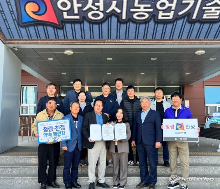 팩트메인뉴스 이훈 기자 | 안성시 농업기술센터 축산정책과가 지역 축산단체들과 손잡고 투명하고 공정한 행정 실현을 위한 '청렴 행보'에 본격적으로 나섰다. 시는 지난 4월 2일, 안성시 축산단체협의회와 함께 청렴 협약식을 개최하고 신뢰받는 축산행정 구현을 위한 협력 기반을 강화했다고 밝혔다.