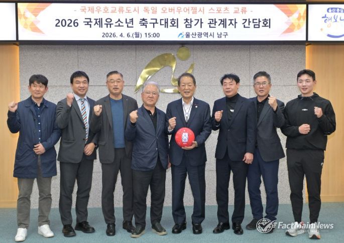울산 남구(구청장 서동욱)는 우호교류 도시인 독일 오버우어젤시에서 열리는 ‘2026 오버우어젤 국제유소년 축구대회’ 참가를 앞두고 선수단의 의지를 다지고 세부 일정을 점검하는 간담회를 6일 개최했다.