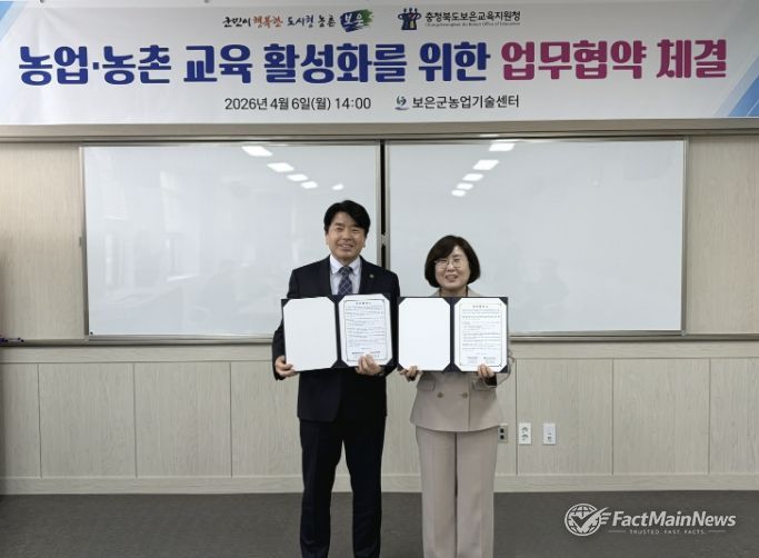 팩트메인뉴스 이훈 기자 | 보은군농업기술센터는 충청북도보은교육지원청과 농업·농촌 교육 활성화를 위한 업무협약을 체결했다고 7일 밝혔다.