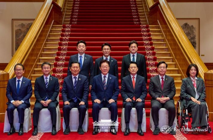 팩트메인뉴스 이훈 기자 | 이재명 대통령이 청와대에서 여야 당 대표 등과 만나 여야정 민생경제협의체 오찬 회담을 했다.