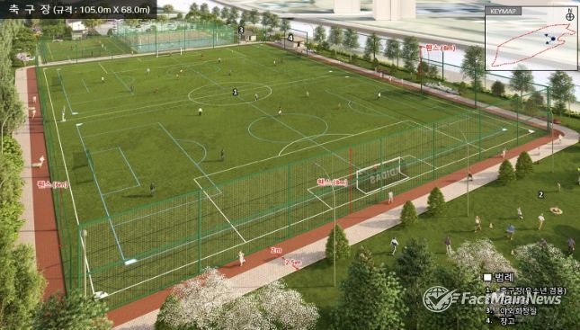 특히 이 가운데 가로 105m, 세로 68m의 국제 규격을 갖춘 축구장이 포함돼 있어 생활 축구 동호인과 주민들의 기대가 한층 커지고 있다.