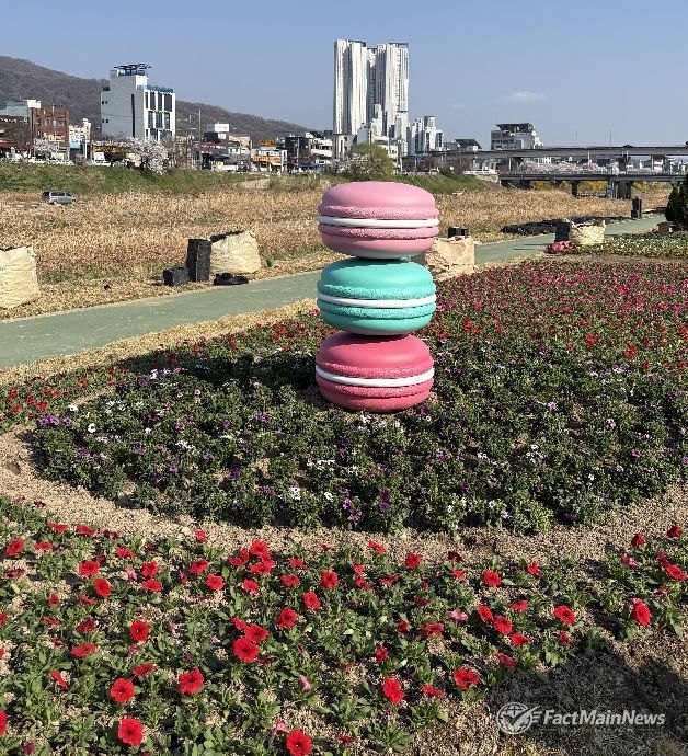 방서교부터 용평교 구간에 조성된 꽃정원(1,000㎡)에는 크리산세멈, 비올라 등 5만본 이상의 꽃묘를 식재 중이며, 사탕 조형물을 설치해 봄 분위기를 더할 예정이다.