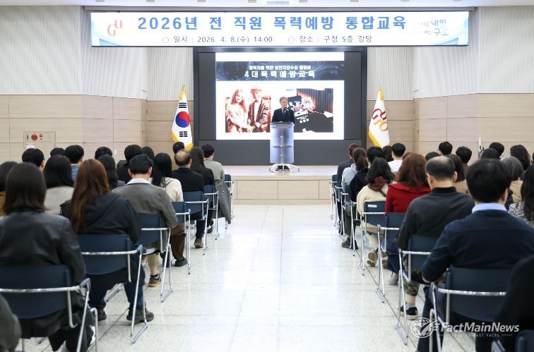 팩트메인뉴스 이훈 기자 | 구로구가 이달 8일 구청 강당에서 공무원, 공무직 근로자, 환경공무관, 청원경찰, 기간제 근로자 등 전 직원을 대상으로 안전한 조직문화 조성을 위한 ‘폭력예방 통합교육’을 실시했다.