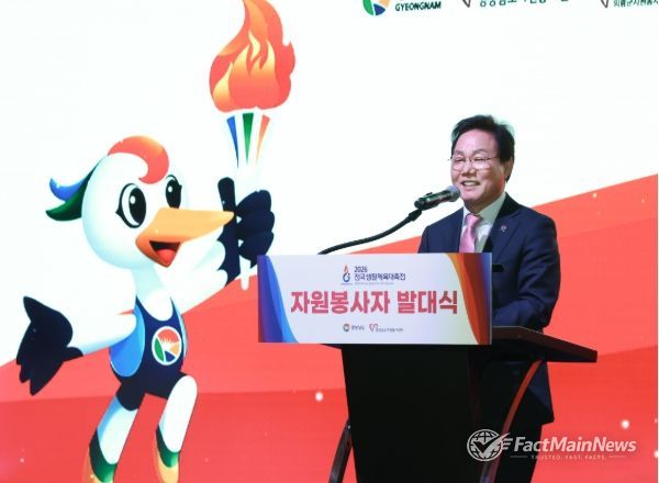팩트메인뉴스 이훈 기자 | 경상남도는 8일 김해 롯데호텔앤리조트 가야홀에서 ‘2026 전국생활체육대축전’의 성공적인 개최를 지원할 자원봉사자 발대식을 열고 본격적인 활동의 시작을 알렸다.