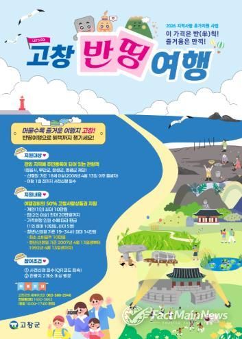 팩트메인뉴스 이훈 기자 | 고창군이 문화체육관광부와 한국관광공사 주관의 ‘2026 지역사랑 휴가지원 시범사업’ 에 전북에서 유일하게 선정되며, 체류형 관광 활성화와 지역경제 선순환을 위한 ‘고창반띵여행’을 본격 추진한다.