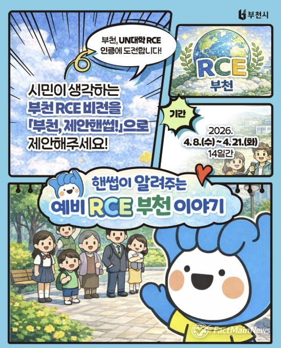 팩트메인뉴스 이훈 기자 | 부천시는 4월 21일까지 온라인 시민 정책제안 플랫폼 ‘부천, 제안핸썹’을 통해 ‘부천 RCE 비전 시민 제안 공모’를 추진한다.