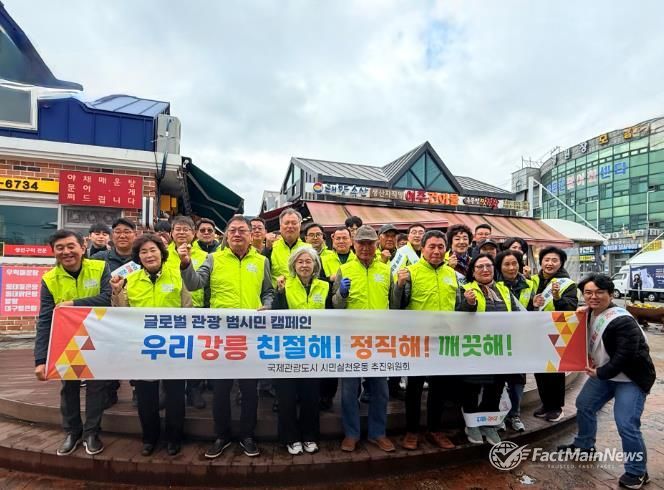 팩트메인뉴스 이훈 기자 | 국제관광도시 시민실천운동 추진위원회는 10일 주문진 일원에서 관광업 종사자를 대상으로 ‘친절·정직·깨끗한 강릉 만들기’ 시민 캠페인을 전개했다.
