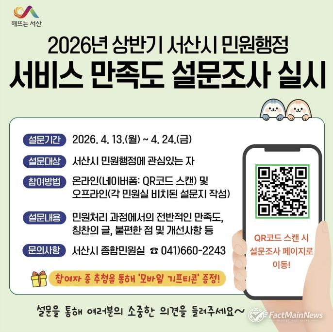 팩트메인뉴스 이훈 기자 | 충남 서산시가 민원행정 서비스의 개선 방향 모색을 위해 시민의 의견을 모은다.