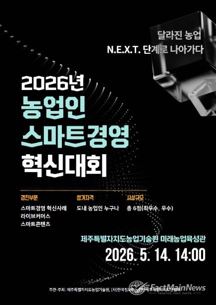팩트메인뉴스 이훈 기자 | 제주특별자치도 농업기술원(원장 김태균)은 디지털 마케팅 등 정보화 우수사례를 발굴하고 농업·농촌 현장의 스마트화 확산을 위해 ‘2026년 농업인 스마트경영 혁신대회’ 참가자를 4월 30일까지 공개 모집한다.