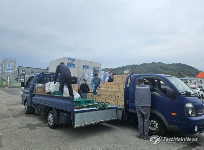 팩트메인뉴스 이훈 기자 | 통영시와 수자원공사는 지난 14일 산양읍 추도 미조마을의 소규모 급수시설의 탁수 발생으로 식수 이용에 불편을 겪고 있는 주민들을 위해 병물 1.8L 850여 병 식수를 전달했다.