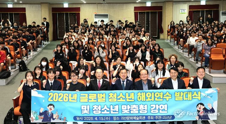 팩트메인뉴스 이훈 기자 | 충북 괴산군은 15일 괴산문화예술회관에서 괴산고등학교 및 관내 중학교 학생들을 대상으로 ‘글로벌 청소년 해외연수 발대식’을 개최했다고 밝혔다.