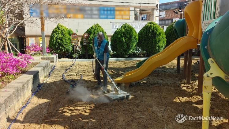 아울러, 어린이들이 보다 쾌적한 환경에서 마음껏 뛰어놀 수 있도록 어린이공원 16개소의 모든 놀이시설과 바닥을 전문 장비로 스팀 소독을 하는 등 위생 관리도 강화해 보다 깨끗한 이용 환경으로 유지하고 있다.