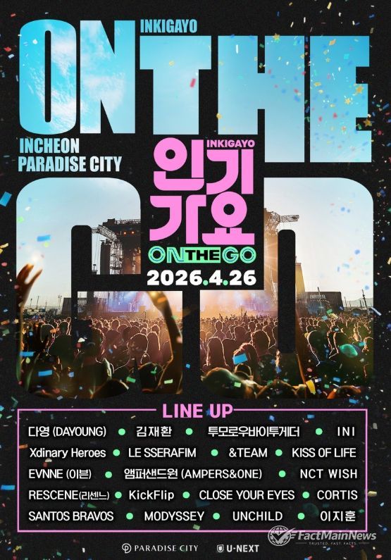 오는 4월 26일(일) 인천 파라다이스시티에서 개최되는 ‘인기가요 ON THE GO’는 SBS 대표 음악 프로그램 ‘인기가요’의 스페셜 공연 프로젝트로, 기존 스튜디오 중심의 음악 방송을 넘어 팬들이 있는 곳으로 직접 찾아가는 콘셉트로 기획됐다. 생방송 현장의 에너지와 공연의 몰입감을 결합한 새로운 형태의 K-POP 공연으로, 아티스트와 관객이 더욱 가까이 호흡하는 특별한 경험을 선사할 예정이다.