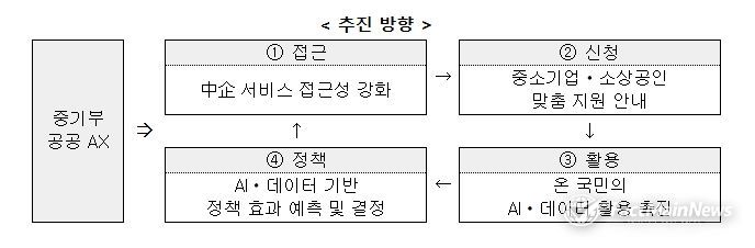 이에 중기부는 공공 AX 전환을 통해, 서비스 접근부터, 사업 신청, 인공지능(이하 AI)‧데이터 활용, 내부 정책 집행까지 전 과정을 통합 지원하는 체계를 구축할 계획이다.