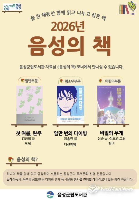 팩트메인뉴스 이훈 기자 | 음성군은 책으로 소통하는 독서문화를 확산하기 위한 2026년 ‘음성의 책’을 최종 선정했다고 밝혔다.