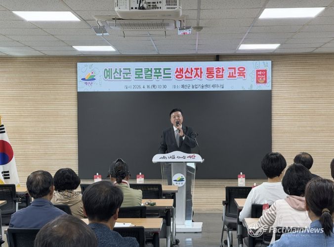 팩트메인뉴스 이훈 기자 | 예산군은 지난 16일 농업기술센터 세미나실에서 로컬푸드 직매장 출하 농가 80여 명을 대상으로 2026년 로컬푸드 생산자 2분기 통합 교육을 실시했다.