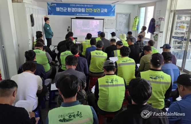 팩트메인뉴스 이훈 기자 | 예천군은 지난 16일 예천순환형매립장 환경미화원 휴게실에서 환경미화원 및 관계자 등 50명을 대상으로 안전사고 예방 및 복무 교육을 실시했다고 밝혔다.