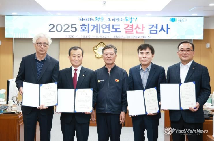 팩트메인뉴스 이훈 기자 | 청송군의회는 지난 16일 오전 10시 의회 특별위원회실에서 ‘2025 회계연도 결산검사위원’에게 위촉장을 수여했다.