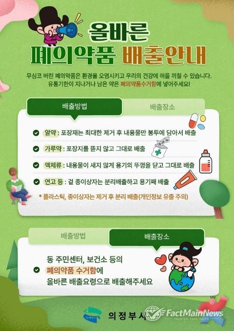 팩트메인뉴스 이훈 기자 | 의정부시는 일상생활에서 발생하는 유해 폐기물인 폐의약품을 안전하게 수집‧처리하기 위해 관내 동 주민센터와 공동주택 등 총 31개소에 ‘폐의약품 수거함’을 설치했다.