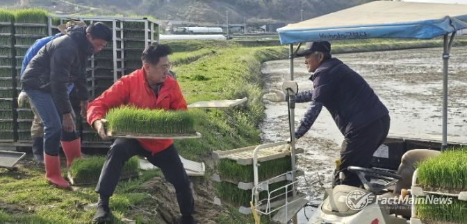 팩트메인뉴스 이훈 기자 | 양평군은 지난 15일 지평면 수곡리에 위치한 전경복 농가에서 올해 첫 모내기를 실시했다고 밝혔다.