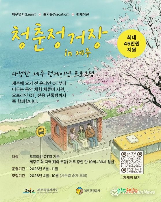 팩트메인뉴스 이훈 기자 | 제주특별자치도와 제주관광공사(사장 고승철)는 오는 5월 3일까지 제주인구정책 통합플랫폼을 통해 도외 거주 청년을 대상으로 제주에서 배우며 방학을 즐길 런케이션 참가자를 모집하고 있다고 17일 밝혔다.