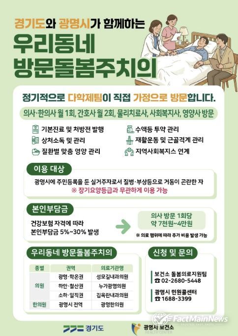 팩트메인뉴스 이훈 기자 | 장기요양등급이 없는 광명시민도 집에서 방문돌봄주치의 진료를 받을 수 있게 된다.