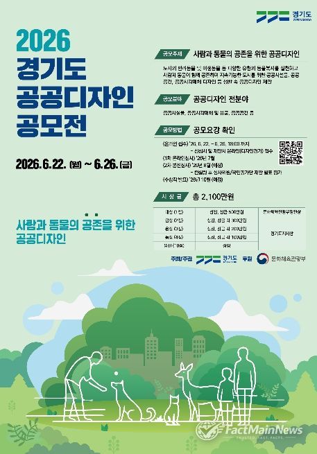 팩트메인뉴스 이훈 기자 | 경기도가 ‘사람과 동물의 공존을 위한 공공디자인’이란 주제로 제20회 ‘2026년 경기도 공공디자인 공모전’을 6월 22일부터 26일까지 개최한다.