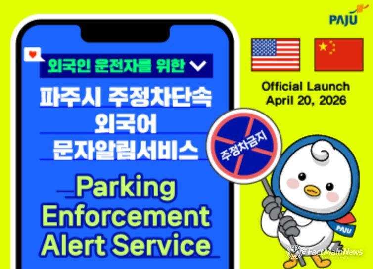 팩트메인뉴스 이훈 기자 | 파주시는 4월 20일부터 외국인 운전자를 대상으로 한 ‘주정차 단속 외국어 문자 알림 서비스’를 시행한다.