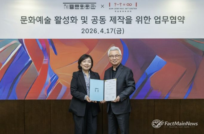 팩트메인뉴스 이훈 기자 | 경기문화재단 백남준아트센터와 재단법인 세종문화회관은 4월 17일, 동시대 예술의 담론 확장과 지속가능한 창작 생태계 조성을 위한 업무협약(MOU)을 체결했다. 이번 협약은 양 기관의 상호존중과 신뢰를 바탕으로, 서울과 경기 지역을 연결하는 광역 문화권 공동제작 모델을 구축하기 위한 협력의 출발점으로 마련됐다.