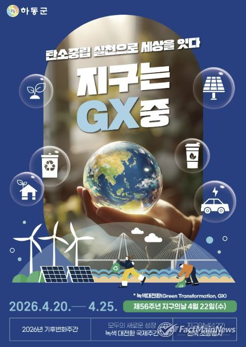 팩트메인뉴스 이훈 기자 | 하동군은 제56주년 지구의 날을 맞아 4월 20일부터 24일까지 ‘제18회 기후변화주간’을 운영한다고 밝혔다.