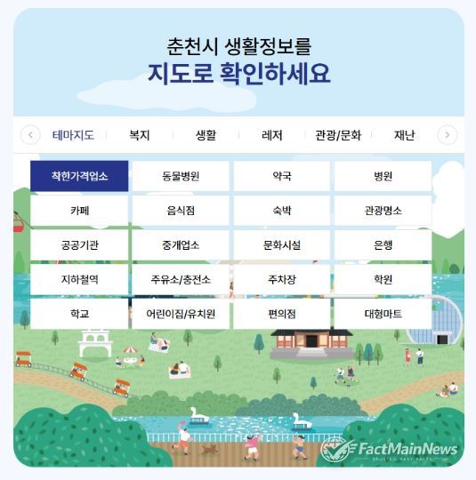 팩트메인뉴스 이훈 기자 | 춘천시가 생활안내지도를 활용해 착한가격업소를 한눈에 확인할 수 있는 서비스를 시작한다.