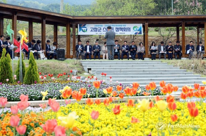 팩트메인뉴스 이훈 기자 | 전북 고창군이 20일 봄꽃이 만개한 꽃정원에서 스마트정책회의(간부회의)를 열고 “꽃정원을 주민여가 공간과 체류형 관광의 핵심으로 만들겠다”고 강조했다.