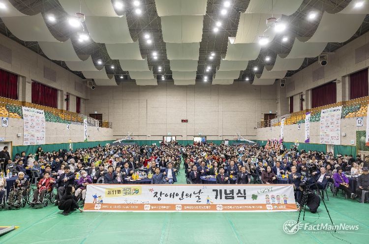 팩트메인뉴스 이훈 기자 | 칠곡군장애인단체연합회(회장 조정수)는 지난 18일 칠곡국민체육센터에서 한영희 칠곡부군수와 기관·단체장, 장애인단체 및 시설 관계자, 회원, 가족, 자원봉사자 등 700여명이 참석한 가운데 ‘제11회 칠곡군 장애인의 날 기념식’을 성황리에 개최했다.