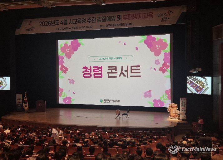 팩트메인뉴스 이훈 기자 | 대구시교육청은 4월 20일 오후 2시 30분부터 대구학생문화센터 대공연장에서 교직원 및 관리자 등을 대상으로 ‘청렴콘서트’를 개최했다.