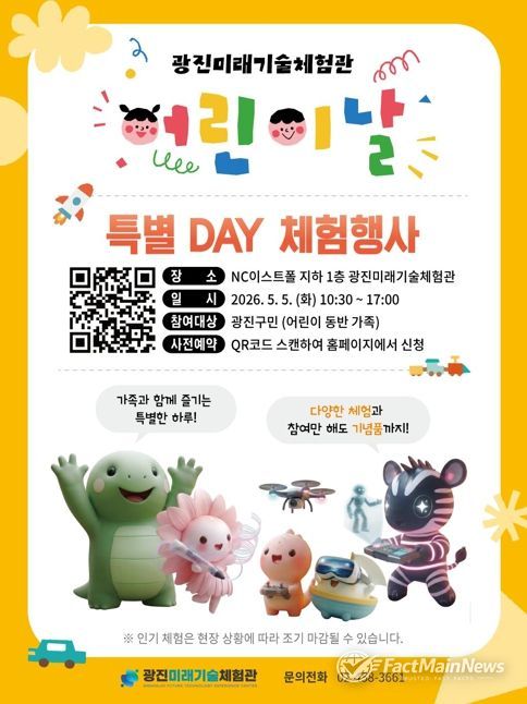 팩트메인뉴스 이훈 기자 | 광진미래기술체험관은 오는 5월 5일 어린이날을 맞아 가족과 함께 즐길 수 있는 ‘광진미래기술 체험데이’를 개최한다.