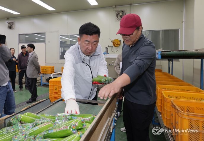 팩트메인뉴스 이훈 기자 | 이범석 청주시장은 20일 흥덕구 오송읍에 위치한 청원생명 애호박 공동선별장을 방문해 공선 및 유통 현황을 점검하고 관계자와 지역 농민들을 격려했다.
