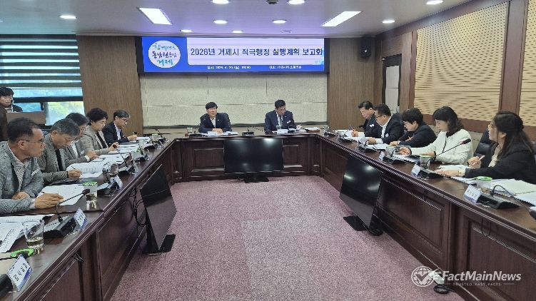 팩트메인뉴스 이훈 기자 | 거제시는 20일 시청 소회의실에서 조직 내 적극행정 문화를 확산하고, 실천 의지를 다지기 위해 ‘2026년 거제시 적극행정 실행계획 보고회’를 개최했다.