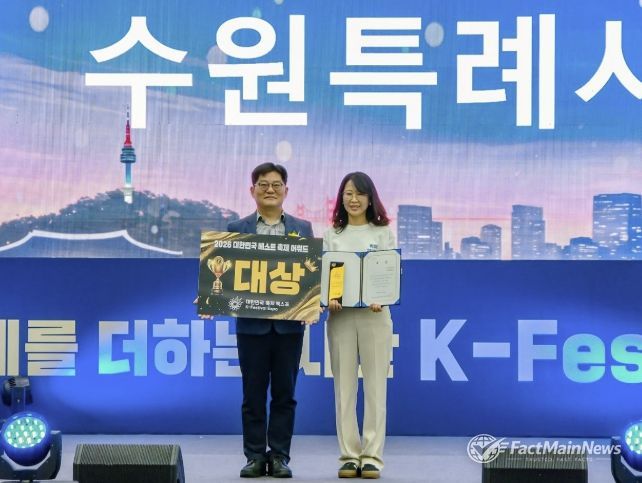 팩트메인뉴스 이훈 기자 | 수원특례시가 ‘제6회 대한민국 축제 엑스포 베스트 축제 어워드’에서 기초자치단체 부문 대상을 받았다. 시상식은 19일 수원컨벤센센터에서 열렸다.